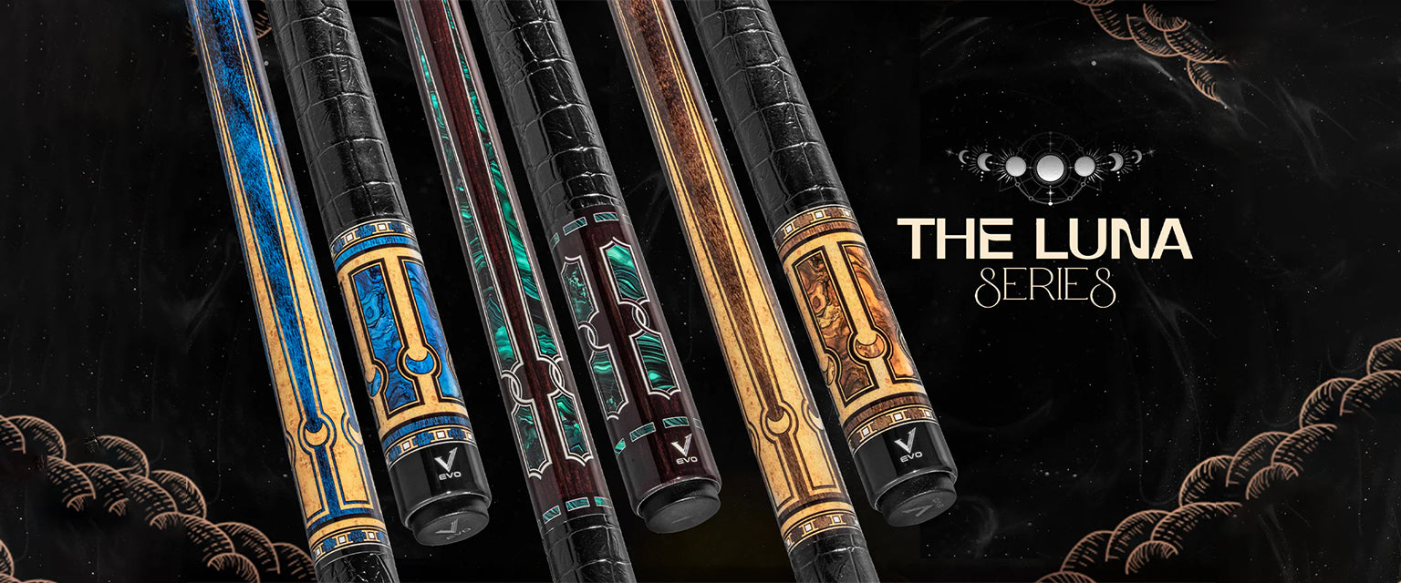 • EVO LUNA POOL CUE - GOLDEN CREST - LEATHER WRAP EVO LUNA POOL CUE - GOLDEN CREST - LEATHER WRAP